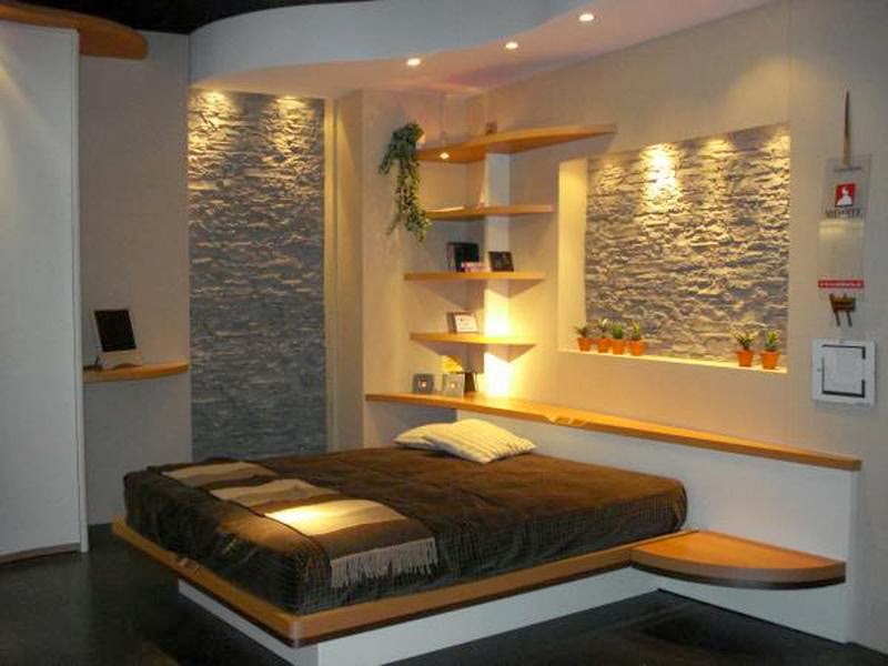 Plants are a good company in the house, so can not be absent if we want a little natural touch to the room. In the proposal from the picture above, a single large plant leaves can bring the necessary light to this bedroom, making emphasize the simplicity of style chosen and embellishing it with magic green.
